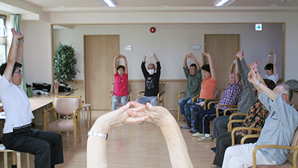 内容……健康チェック、体操、ストレッチ、脳トレなど