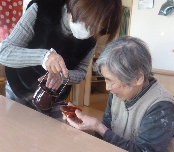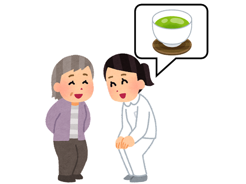 各居室を周り、補水の声掛けを行います。お茶やココアなど、好みに応じて提供しています。