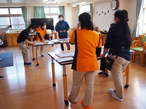 夜勤者とナースから申し送りを受けます。利用者様の状態などについて話し合いもします。